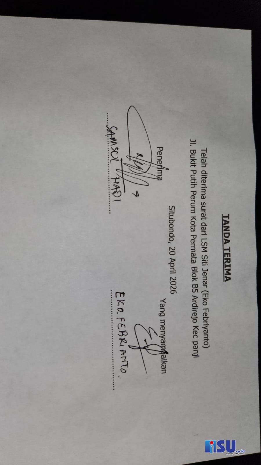 Keterangan Fhoto: Surat Tembusan kepada Bupati Situbondo yang juga resmi dilayangkan pagi ini Senin 20 April 2026 pukul 08:00 Wib.