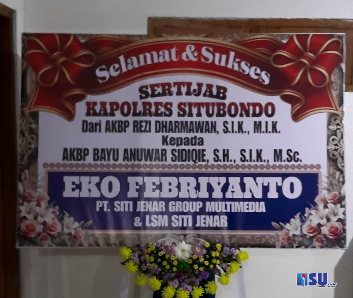 Karangan bunga tersebut berasal dari instansi pemerintah, perusahaan swasta, organisasi kemasyarakatan, tokoh masyarakat, serta sejumlah perusahaan media lokal Situbondo. Di antara deretan ucapan tersebut, karangan bunga dari PT SITI JENAR GROUP MULTIMEDIA dan LSM SITI JENAR tampak berada di barisan depan, sebagai wujud apresiasi dan dukungan terhadap kepemimpinan Kapolres Situbondo yang baru.
