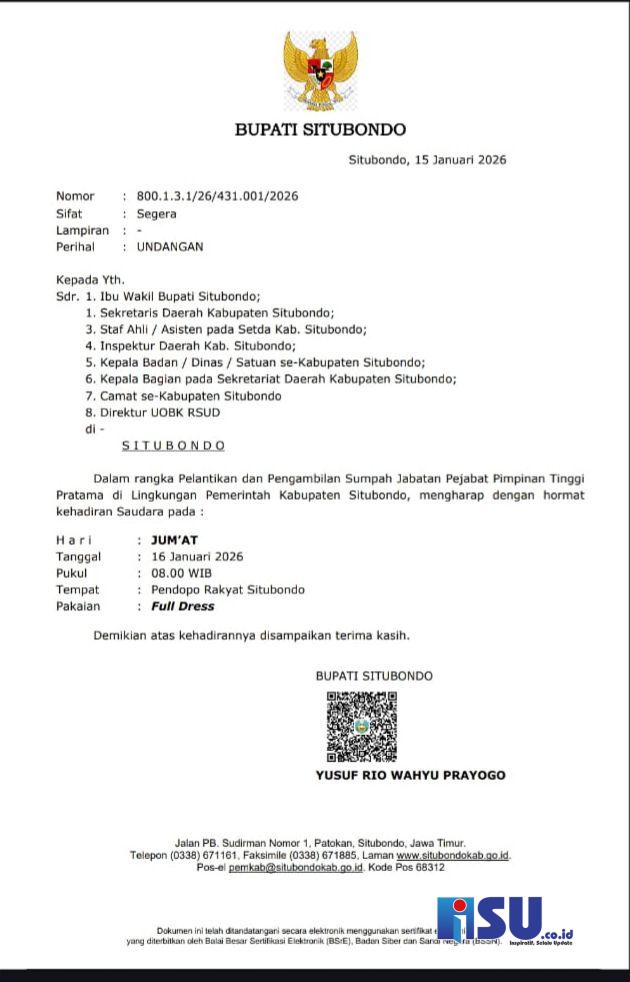 Hanif juga mengungkapkan informasi yang diterimanya terkait agenda pelantikan pejabat eselon II di lingkungan Pemerintah Kabupaten Situbondo. Disebutkan, sekitar 25 pejabat eselon II dijadwalkan akan dilantik pada Jumat mendatang. Sebagian dari mereka hanya akan didefinitifkan di posisi lama, sementara sebagian lainnya akan menempati jabatan baru.